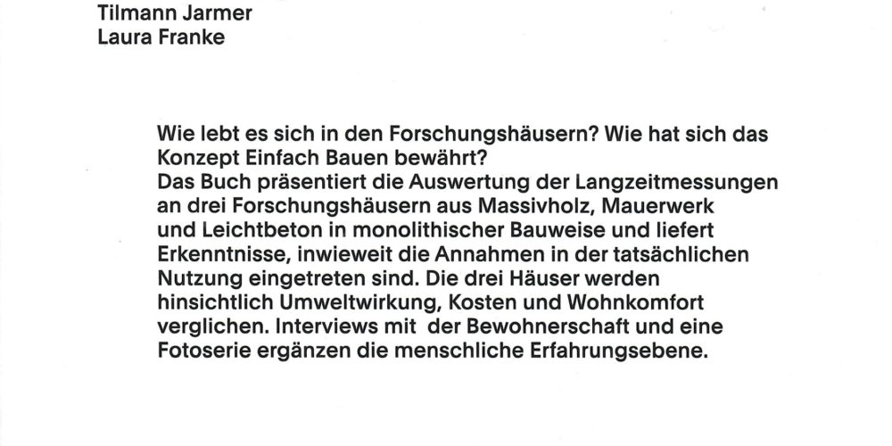 LAURI JÄÄSKELÄINEN Monoliittista ja yksinkertaista rakentamista Münchenin Teknillisen yliopiston moniammatillinen tiimi päätti kokeilla käytännössä, miten voi rakentaa yksinkertaisella tekniikalla toimivia yksinkertaisia asuinrakennuksia. Bad Aiblingin kylpyläkaupunkiin Münchenistä kaakkoon toteutettiin kolme samanlaista pienkerrostaloa, eri runkomateriaaleilla.Materiaaleiksi valittiin kevytbetoni, massiivipuu ja tiiliharkko. Valmiita rakennuksia ja niiden toimivuutta mitattiin ja tutkittiin vuoden ajan. Myös asukkaita haastateltiin. Tulokset on koottu kahteen teokseen: Einfach Bauen I ja Einfach Bauen II. Tutkimushankkeen tulokset esitellään jälkimmäisessä teoksessa Einfach Bauen II (2024).Projektia johti professori Florian Nagler, jonka arkkitehtitoimisto suunnitteli kolme periaatteessa samanlaista ja samankokoista vuokrataloa. Tutkimushypoteesina oli, onko ylipäätänsä mahdollista rakentaa minimaalisella talotekniikalla asuinrakennuksia, joissa saavutetaan miellyttävä sisäilmasto. Tavoitteeksi asetettiin…